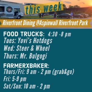 Join us at the park for a satisfying meal or snack from Farmer + Baker or a rotating selection of local food trucks! Available Tuesday through Sunday.